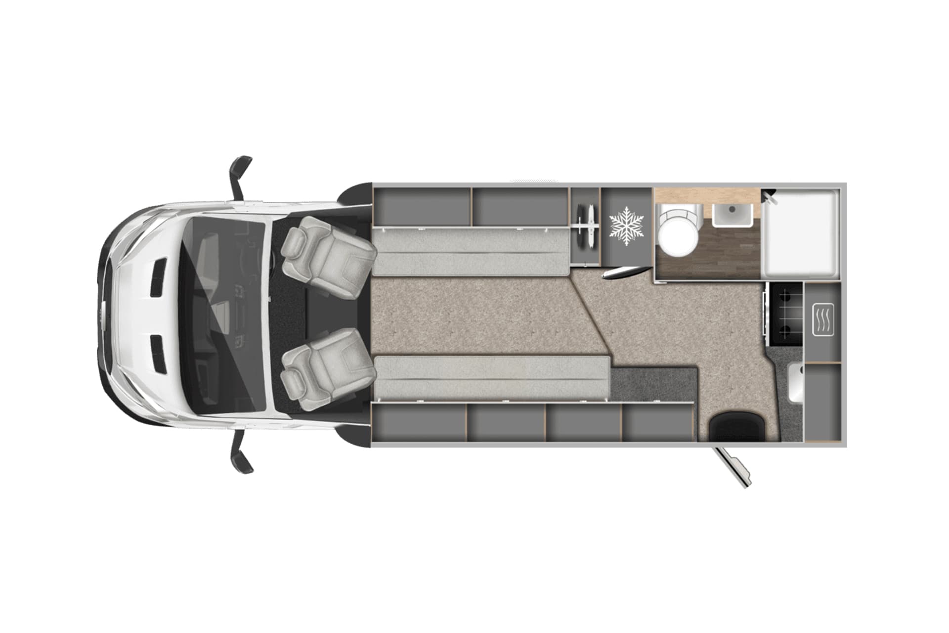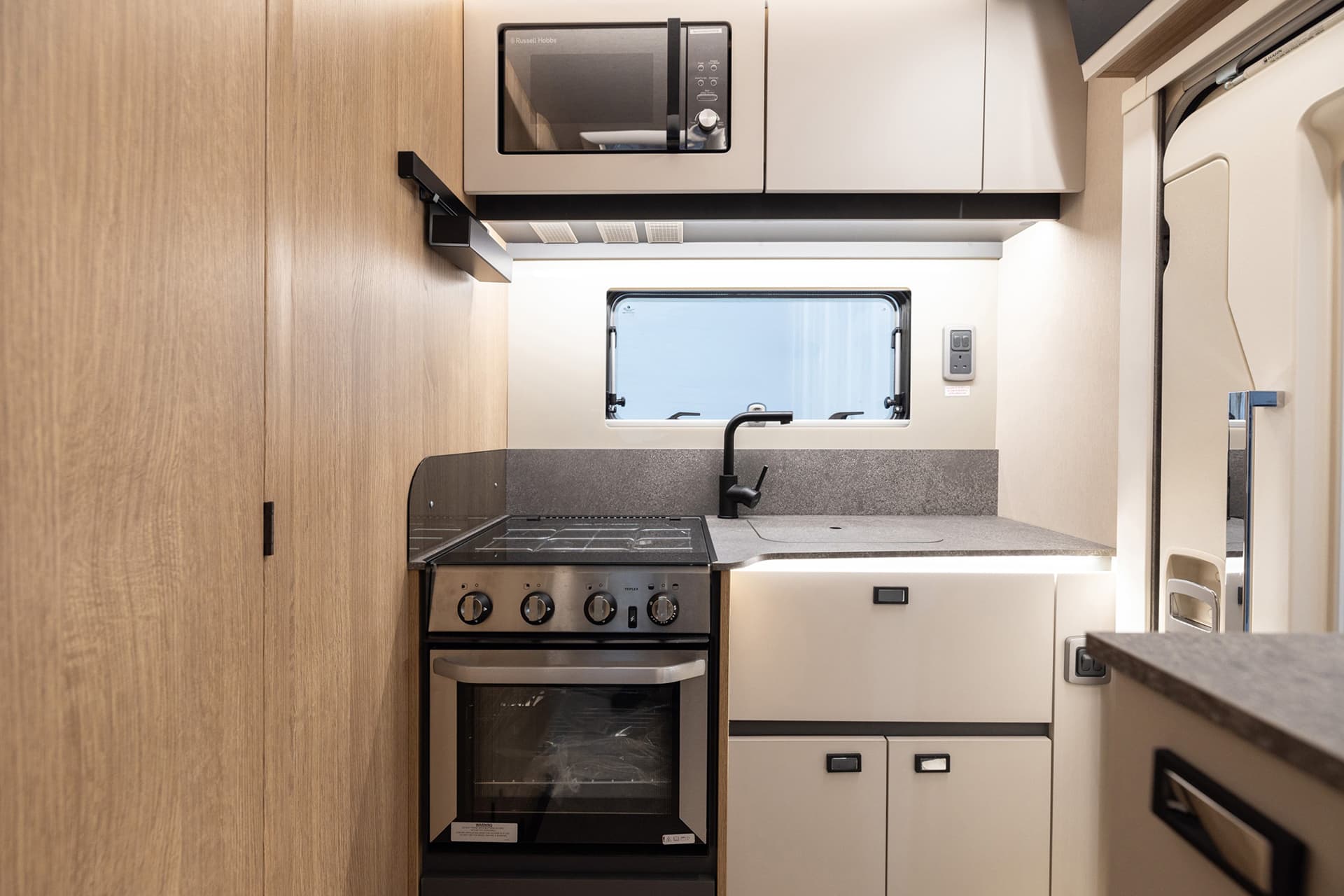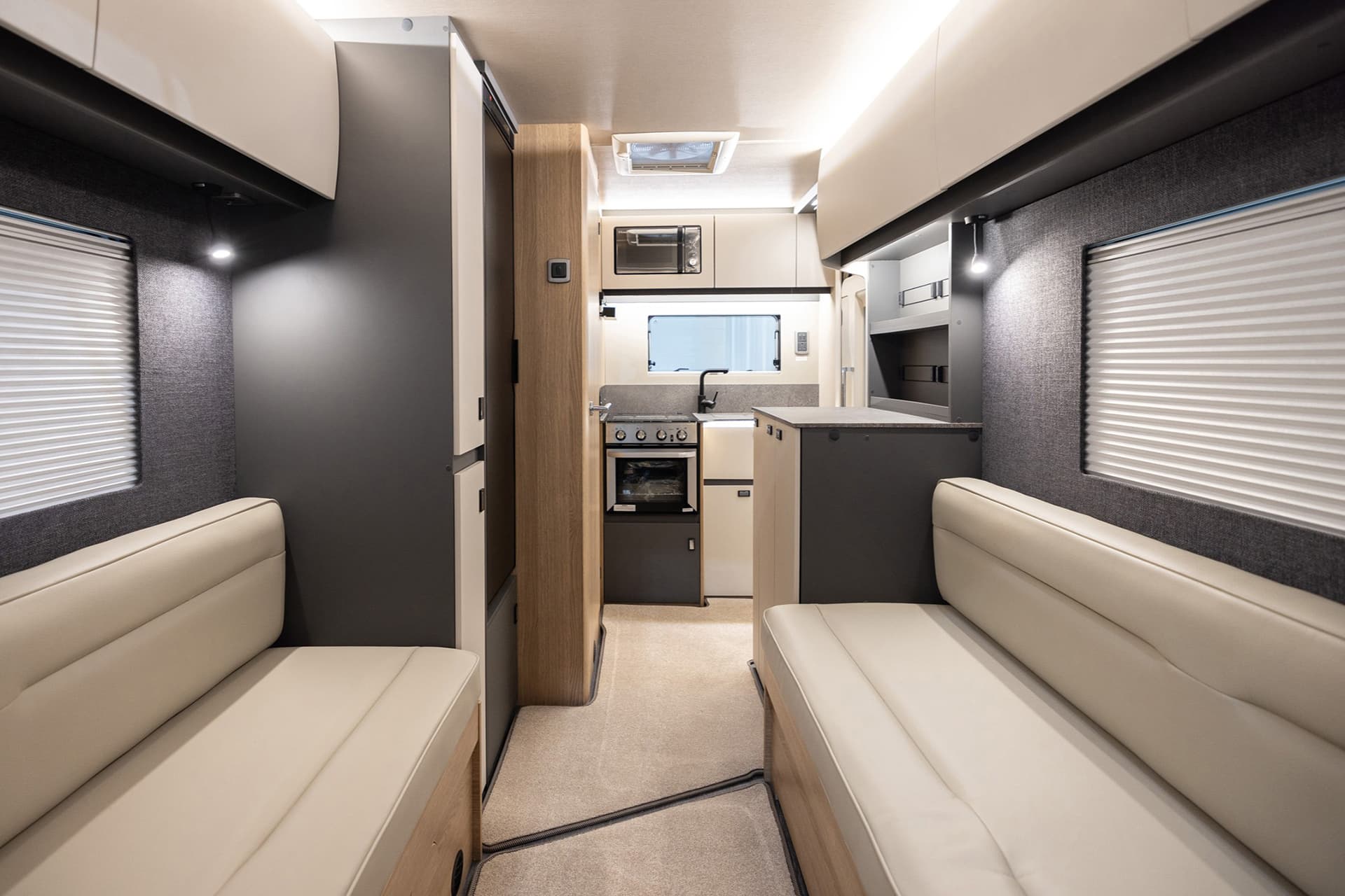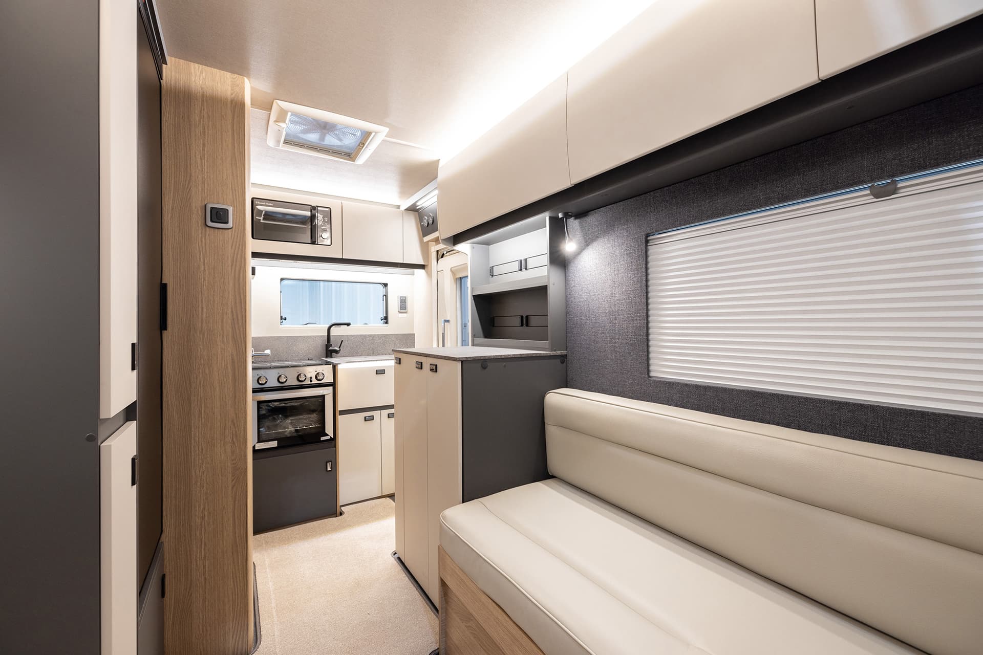 Coming in at 6.2 metres in length and 2.24 metres in width, this is one of the smallest and easiest to manoeuvre motorhomes on the market. The slimline build and modern technology make driving feel as easy as being in a campervan.