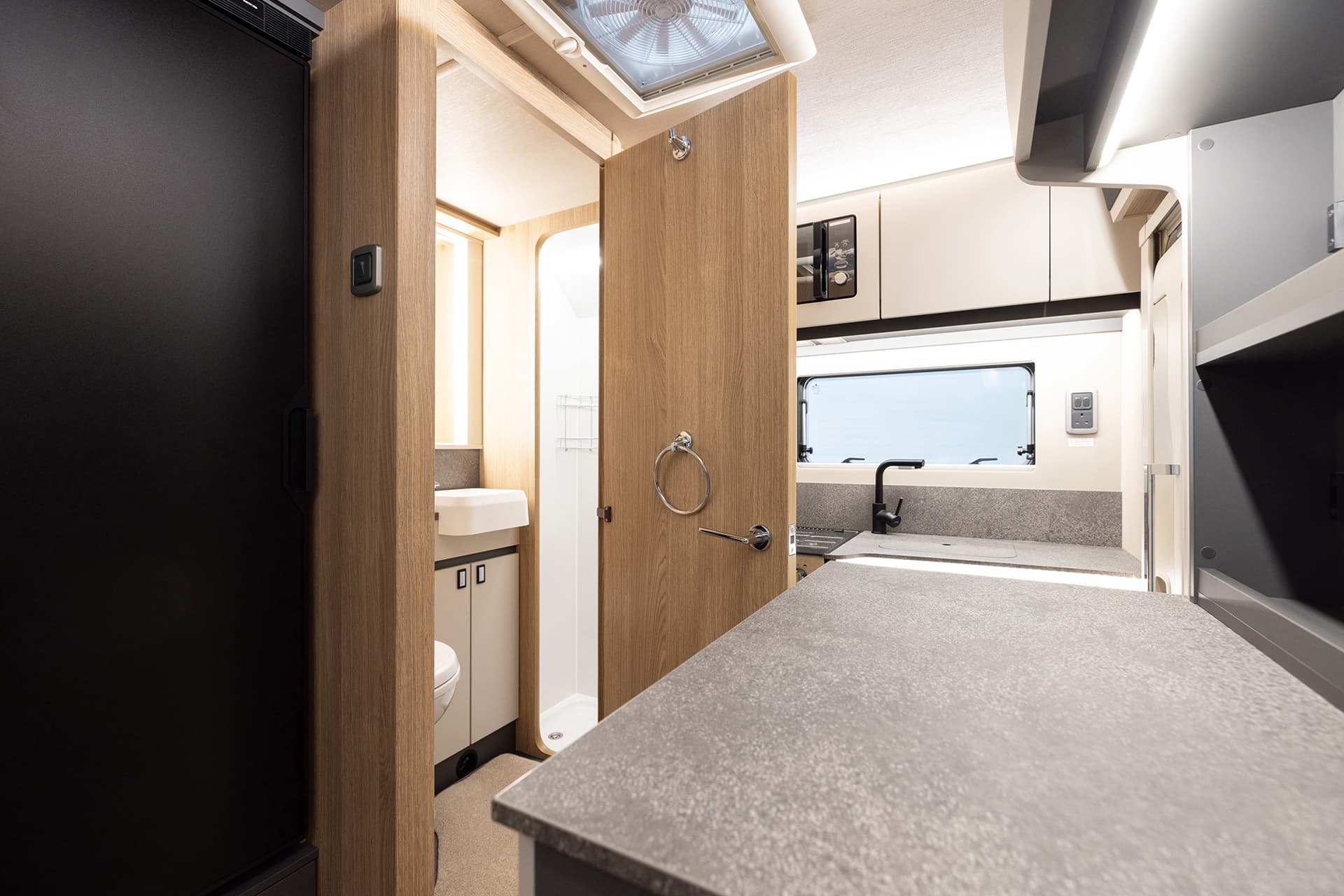 The Auto-Trail Excel 620S has the features and layout of a home, put together into a clever, compact design. Step inside to find a spacious and comfortable interior, which features a large lounge area, dedicated bathroom and rear kitchenette. At night, this lounge transforms into a double bed, giving couples a soft and luxury place to sleep in, whilst still maximising space during the day.