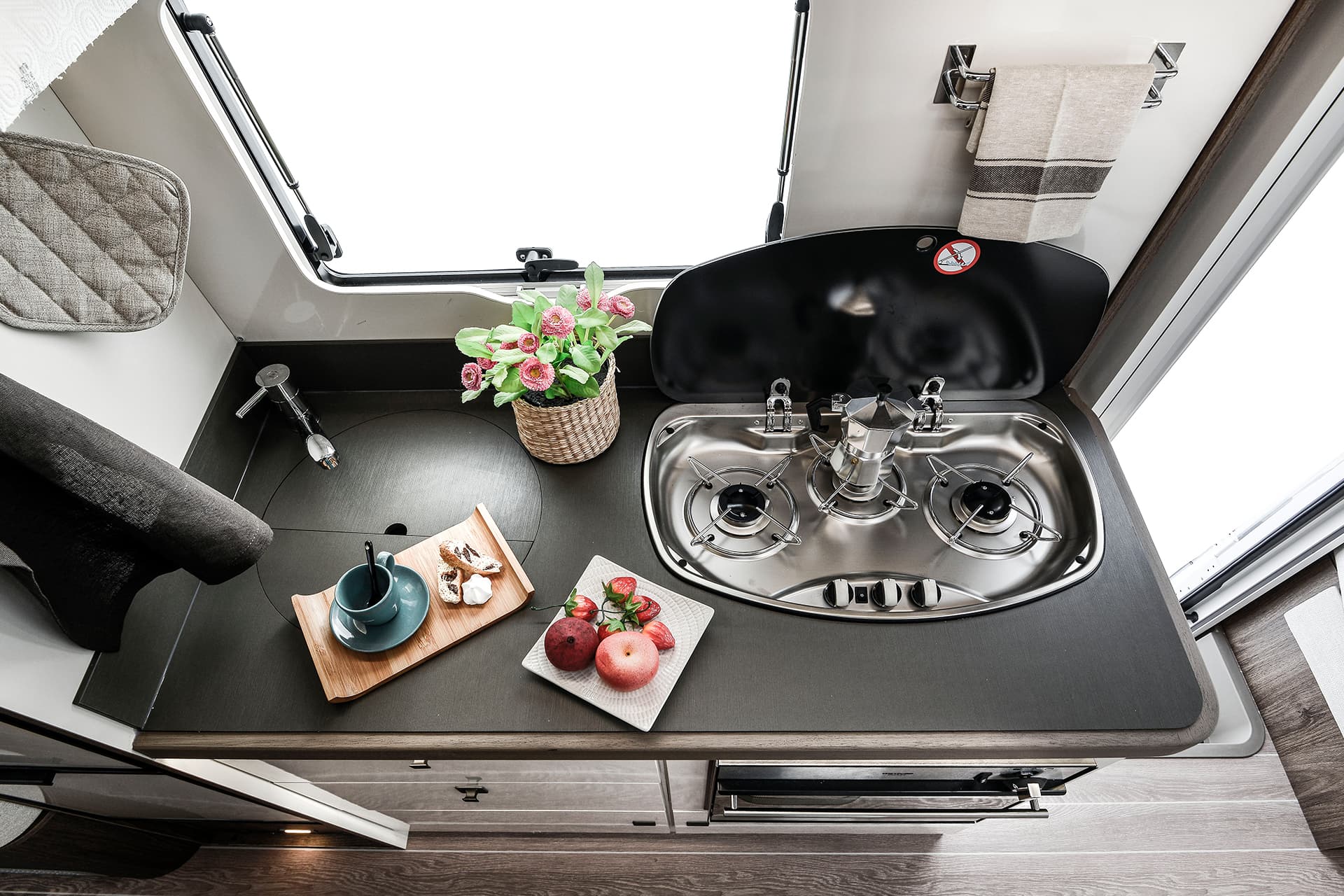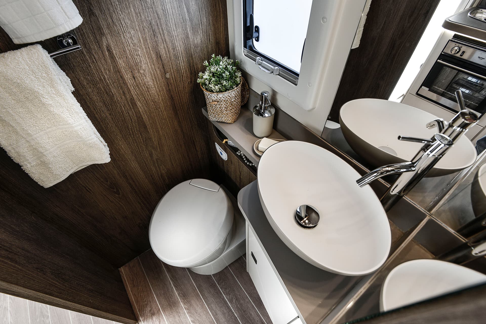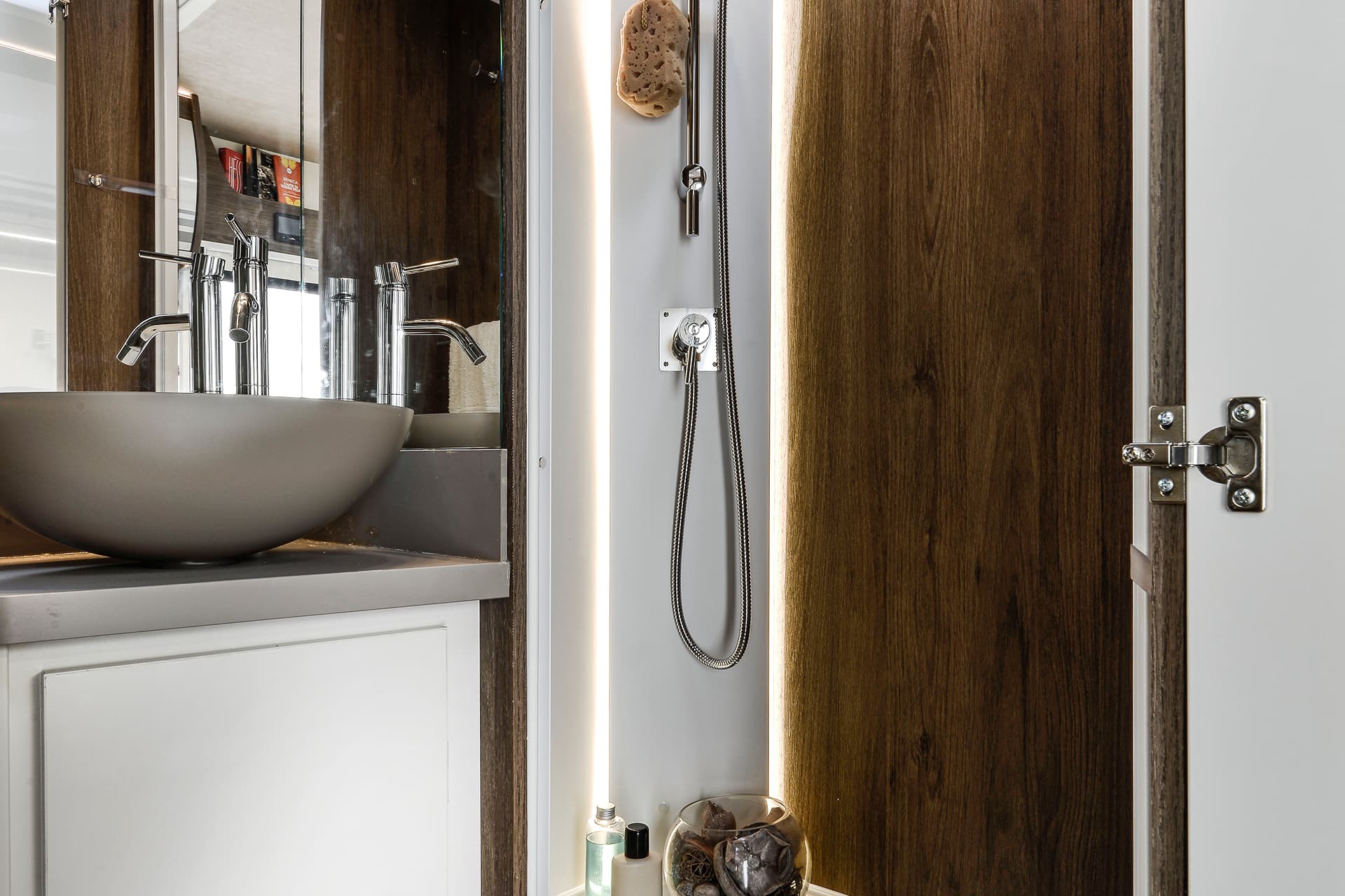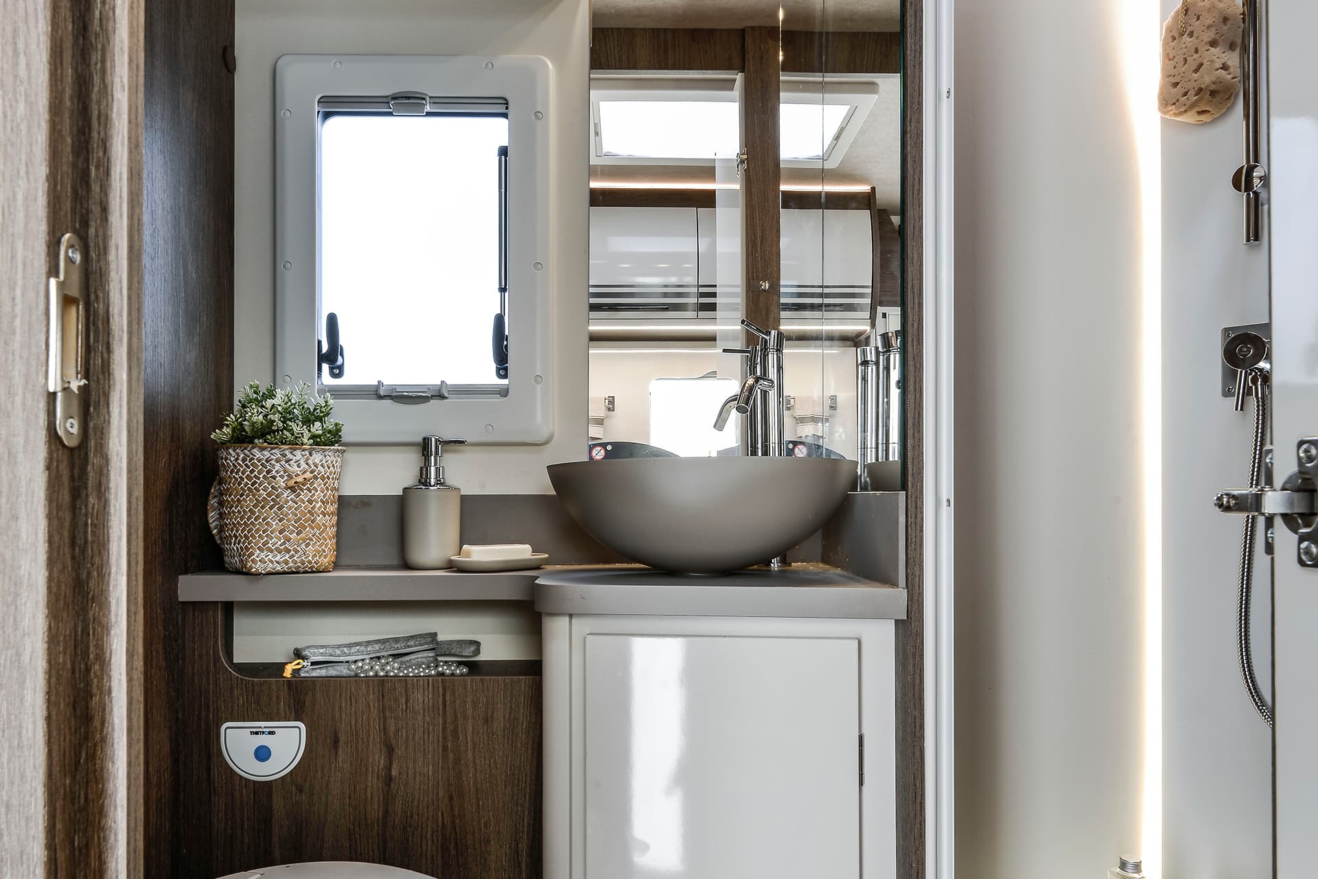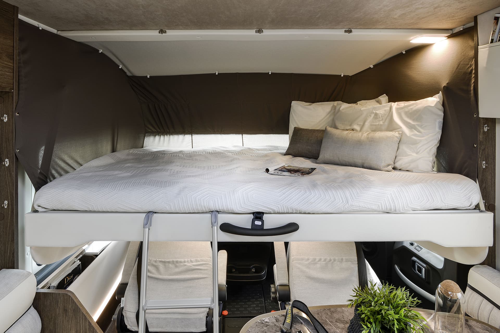 When it reaches night time, the rear lounge can also transform into a large double bed, which, when combined with the electric drop-down double towards the front, means the 745 can easily sleep up to 4 people.