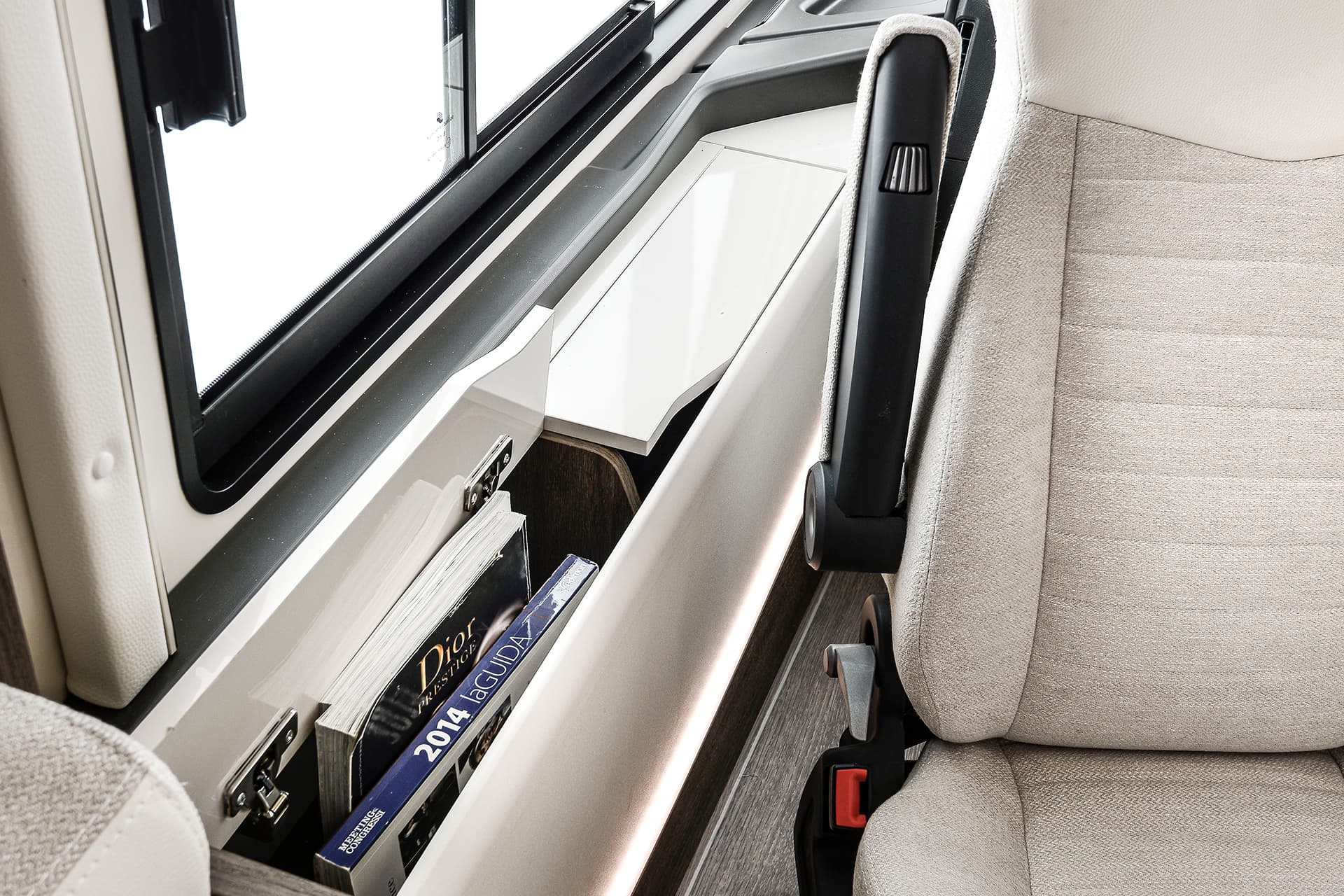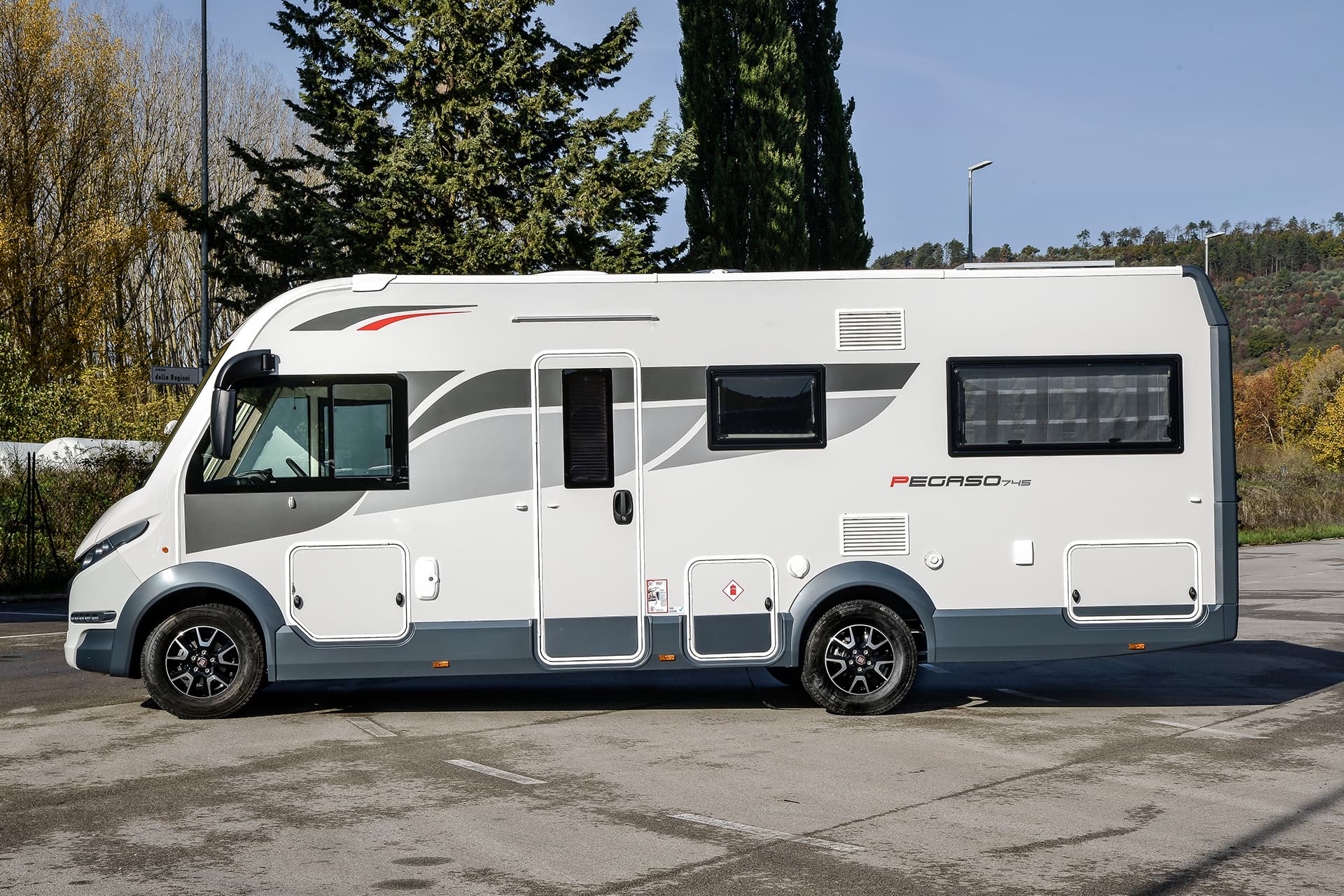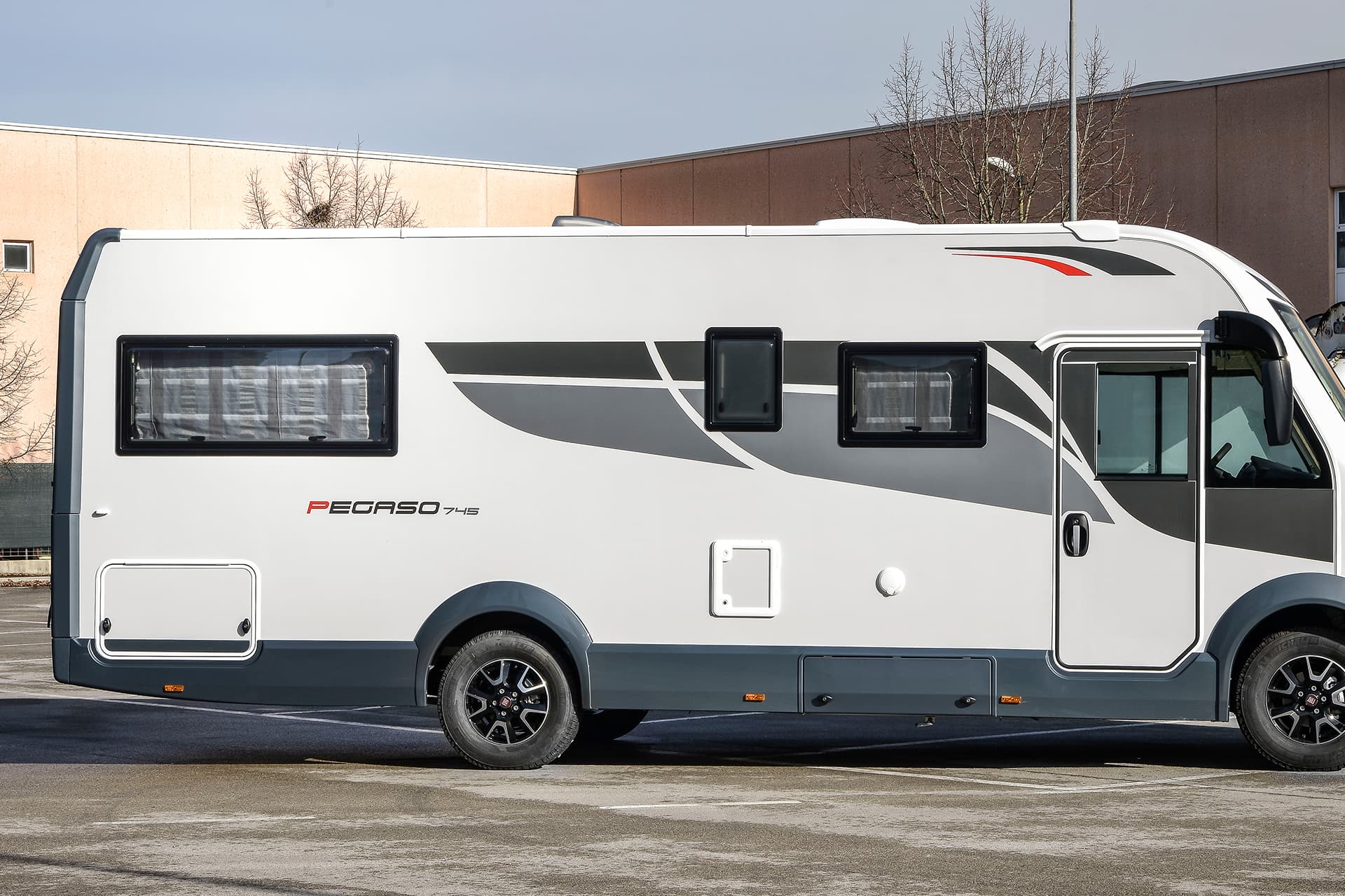 The Pegaso 745 is a prestigious A-Class motorhome for all the family. Its marquee feature is the rear lounge, a luxurious and comfortable area which adds more space to the already sizeable interior. Plush seating and a variety of storage areas top it off, and help turn this leisure vehicle into a true home.