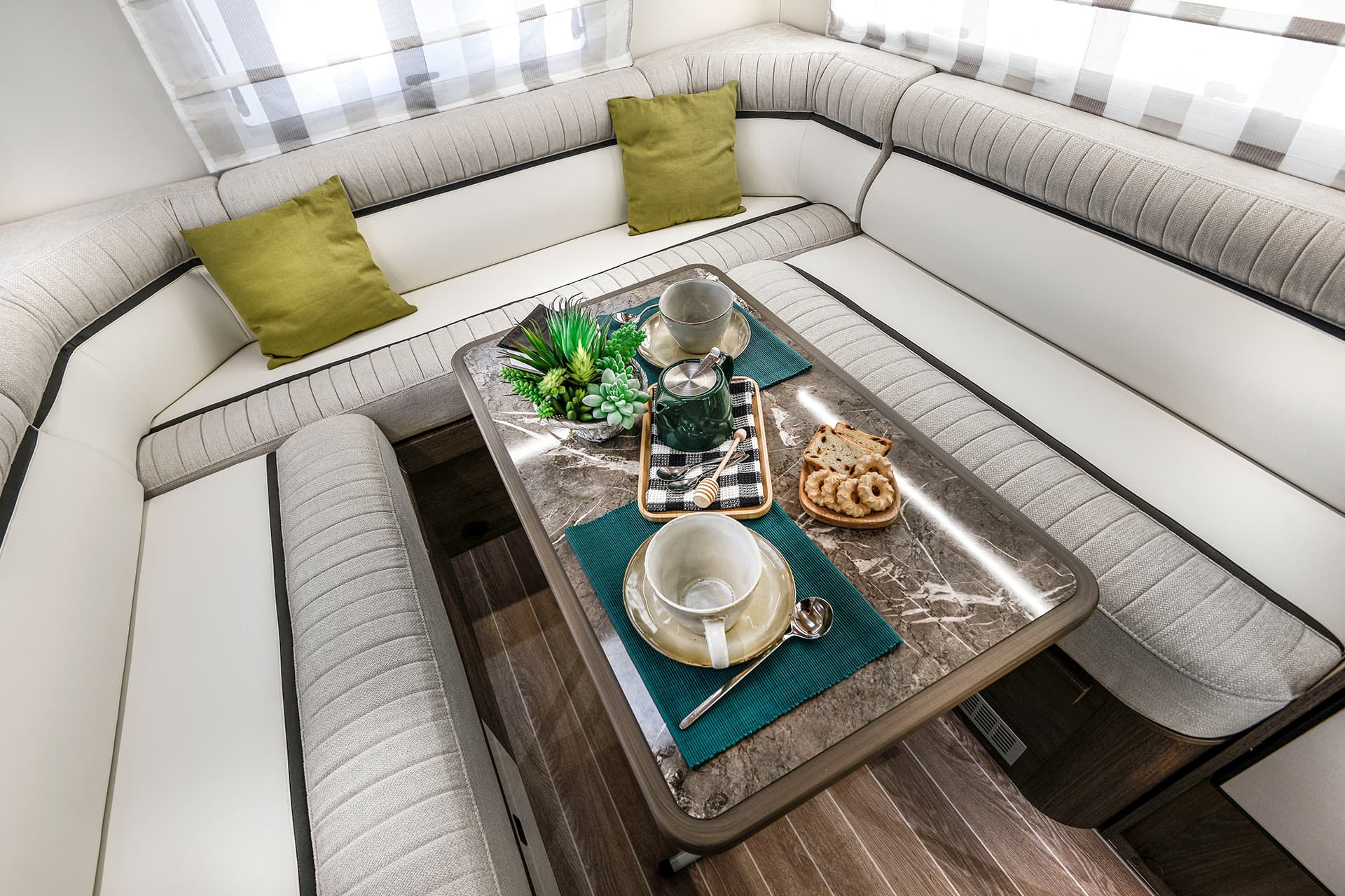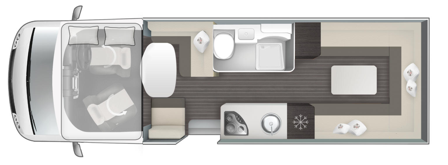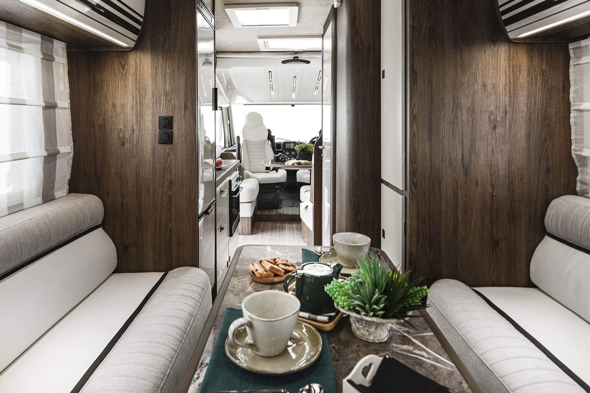 The Pegaso 745 is a prestigious A-Class motorhome for all the family. Its marquee feature is the rear lounge, a luxurious and comfortable area which adds more space to the already sizeable interior. Plush seating and a variety of storage areas top it off, and help turn this leisure vehicle into a true home.