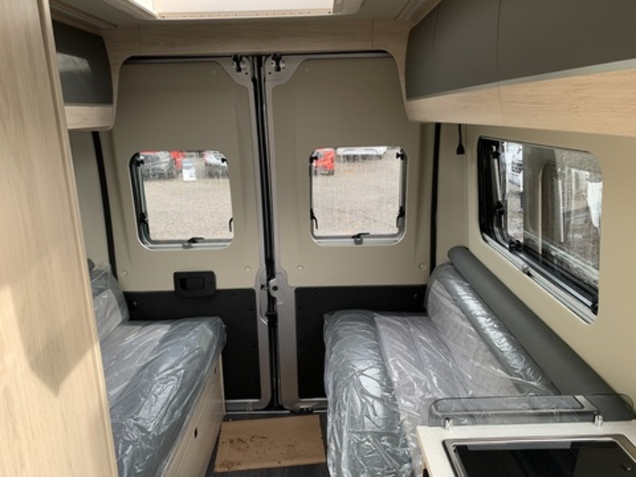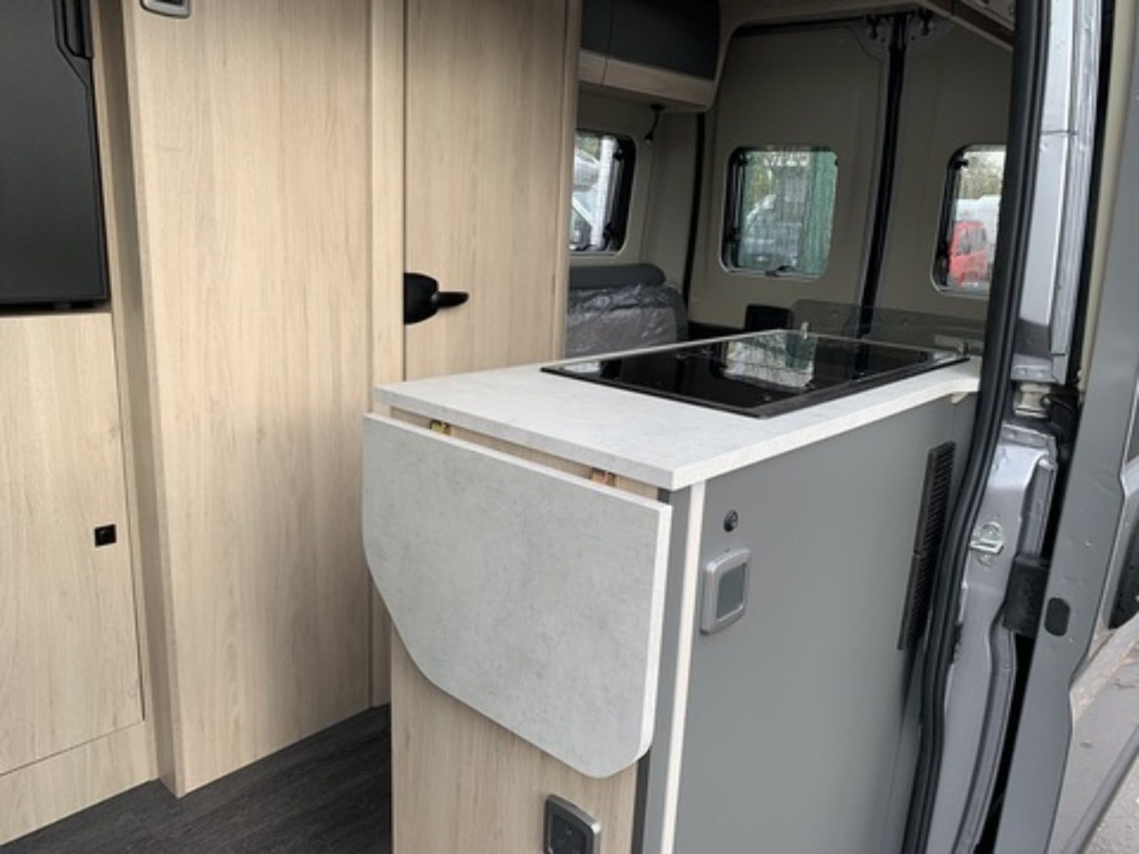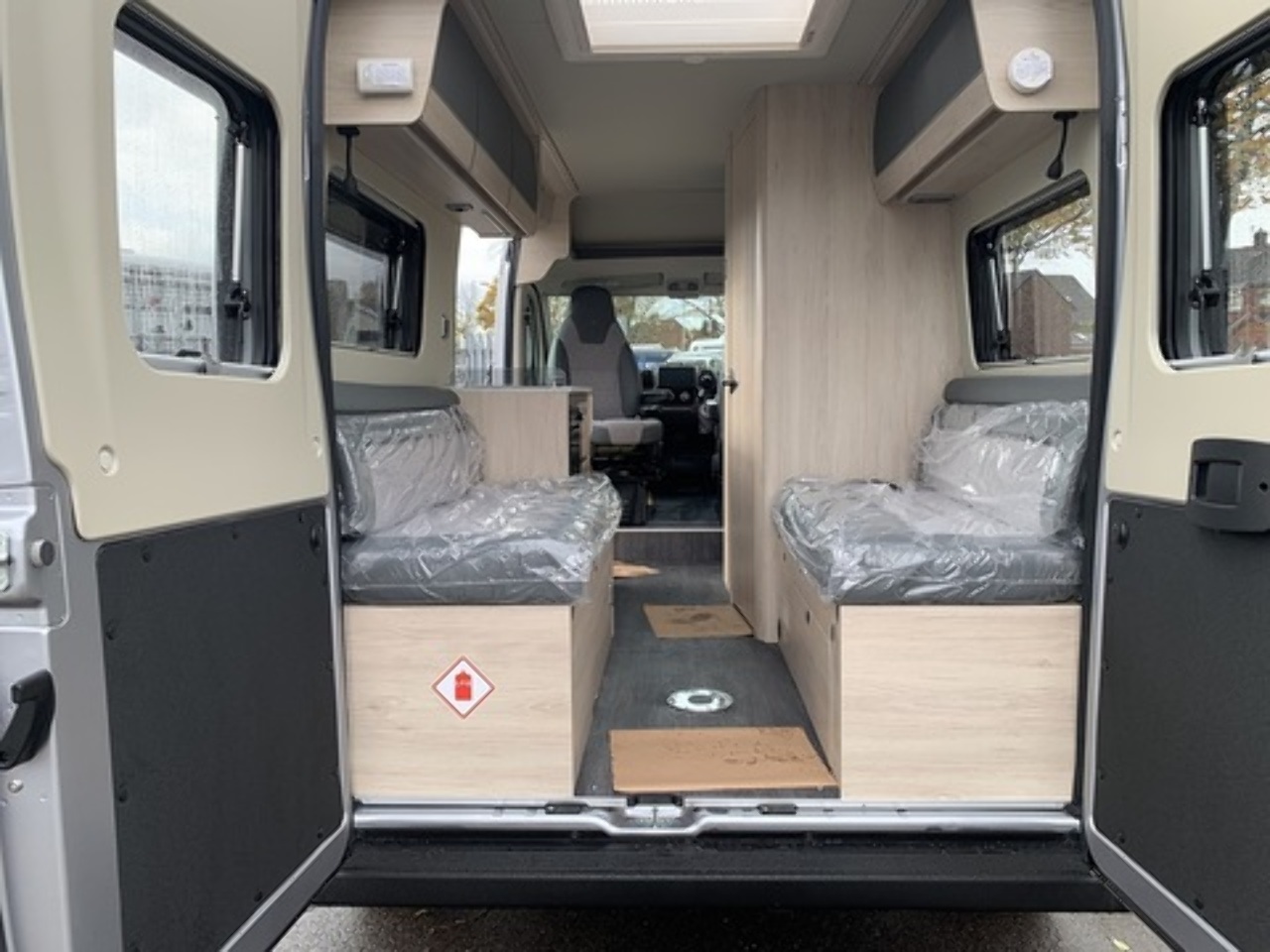 Features of this clever little model include: 140BHP, 6-Speed Manual Gearbox, solar panel, Artense Grey, Loose laid carpets, Pioneer head Unit with Apple Carplay and Android Auto, swivel captains seats, 2x gas hobs, Oven/Grill, sink, Compressor fridge, Whale gas + Electric heating + Hot water, Washroom, Shower, Wash Basin, Cassette Toilet, Flyscreens + Blinds, Preparation for TV installation.
