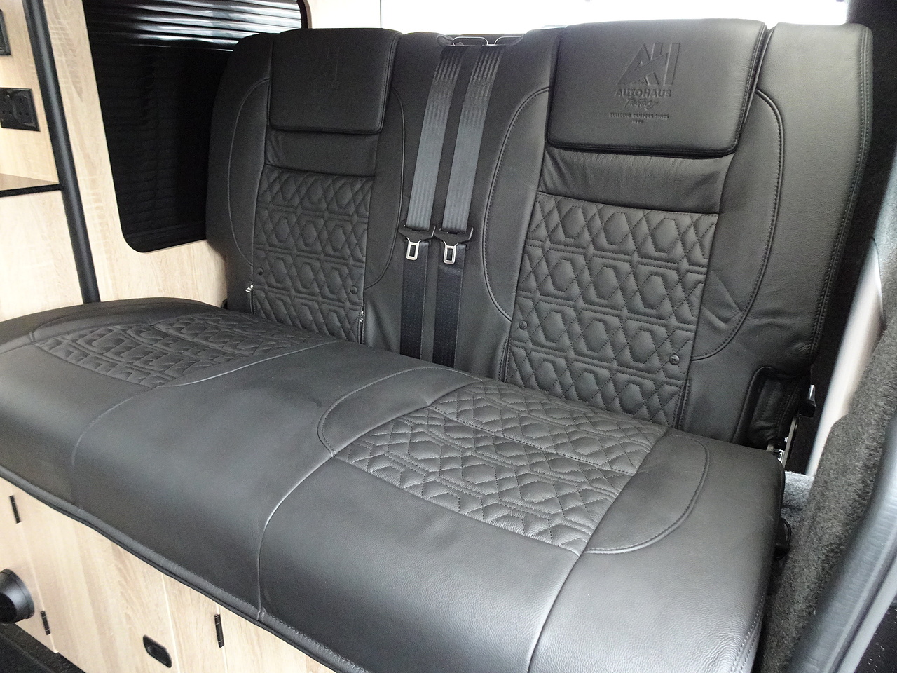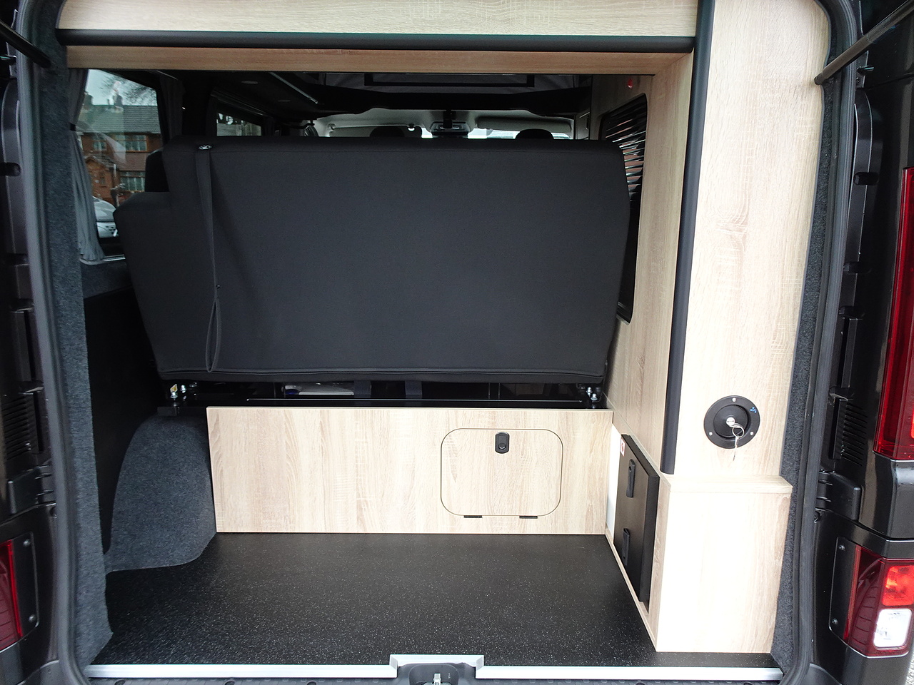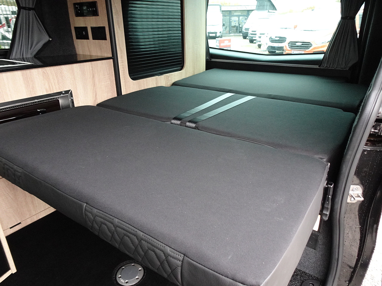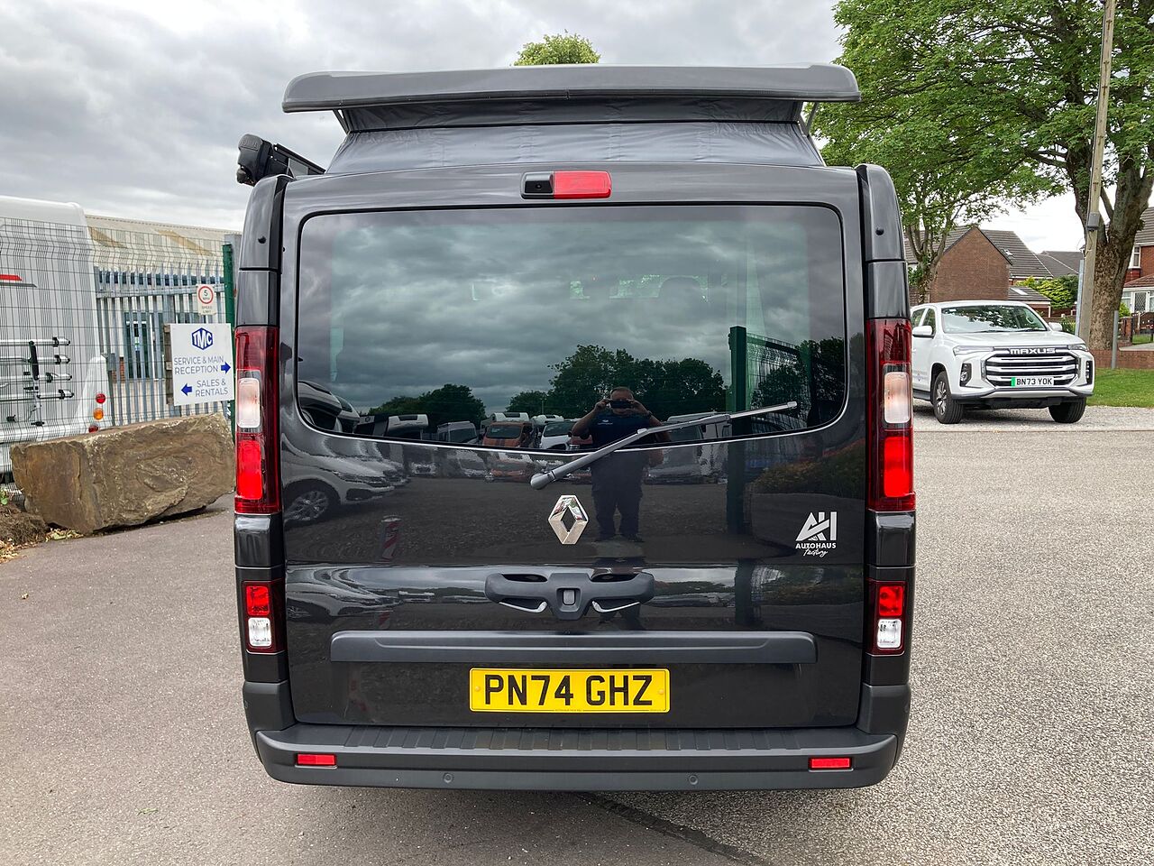 The all new Autohaus Creston in stunning Deep Black. This versatile Camper is based on the latest Renault Traffic 150ps Euro 6 Automictic and comes with LED Daylight running headlights, taillights, front and rear parking sensors, elecetric folding heated mirrors, heated tailgate with wash-wipe, DAB radio with app connect, single front seats with armrests, height adjustment, lumber support and factory immobiliser alarm. The Creston conversion comes with an impressive specification as standard which includes, Reimo front elevating roof, Roof bed, Tinted windows all round with o/side front rear opening, Blackout curtains and cab silver screen, Fully sound proofed insulated lined and trimmed, Safety flooring, Creston furniture with Tristone worktop, Table on pole, Combination twin hob and sink, 50Ltr Fridge freezer, 20Ltr Oven-grill, Webasto diesel hot air heater, 30Ltr Fresh water tank with in-line pump, Gas locker with all fittings, Mains 240v hook up with RCD charger system, 240v Sockets, Split charger system with 100 amp AGM Leisure battery, LED lighting, 12v sockets, Rib 120cm rear seat bed with 2-3-point seat belts, Leather upholstery, Passenger front seat fitted with swivel base, Cabin mats, F45 awning with LED light, Side steps, Alloy wheel upgrade, Autohaus decals, Safety certificates gas and electric.