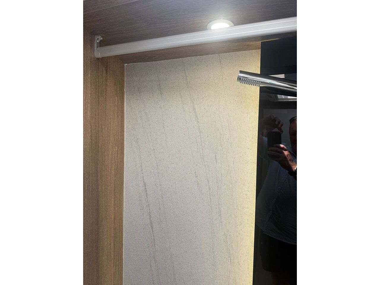 Unique big room for toilet and shower.
