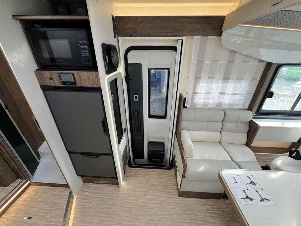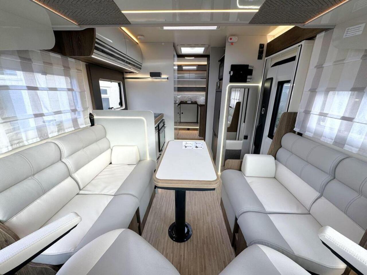 Pegaso 740 redesigned with face-to-face dinette table, has an
