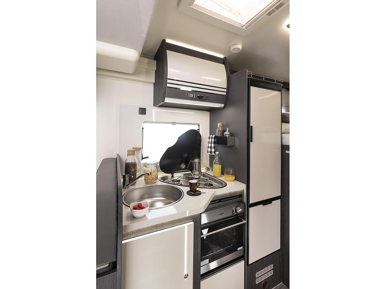 This 6.41m model is a comfortable five-berth model. An ideal travelling companion for families and couples alike, this latest model does not disappoint with bold external graphics, a stylish silver cab & bumpers, and an equally luxurious interior throughout. The 665 has ample internal storage and a factory-fitted bike rake; the Zefiro 665 is ready for your next adventure. Ideal family van compact size but spacious inside.