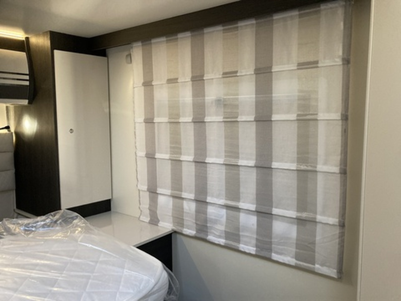 1, Seitz windows with roman blinds.