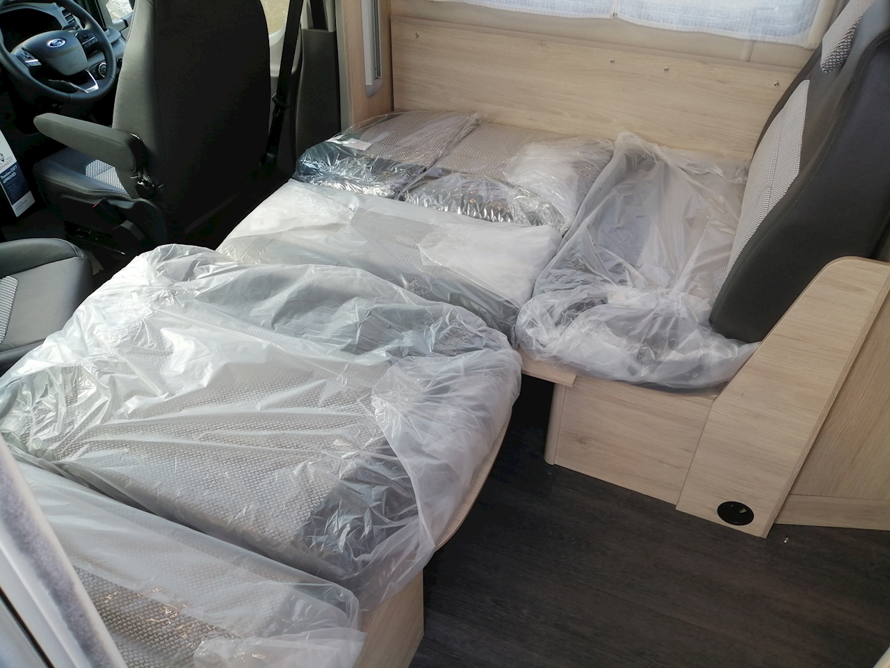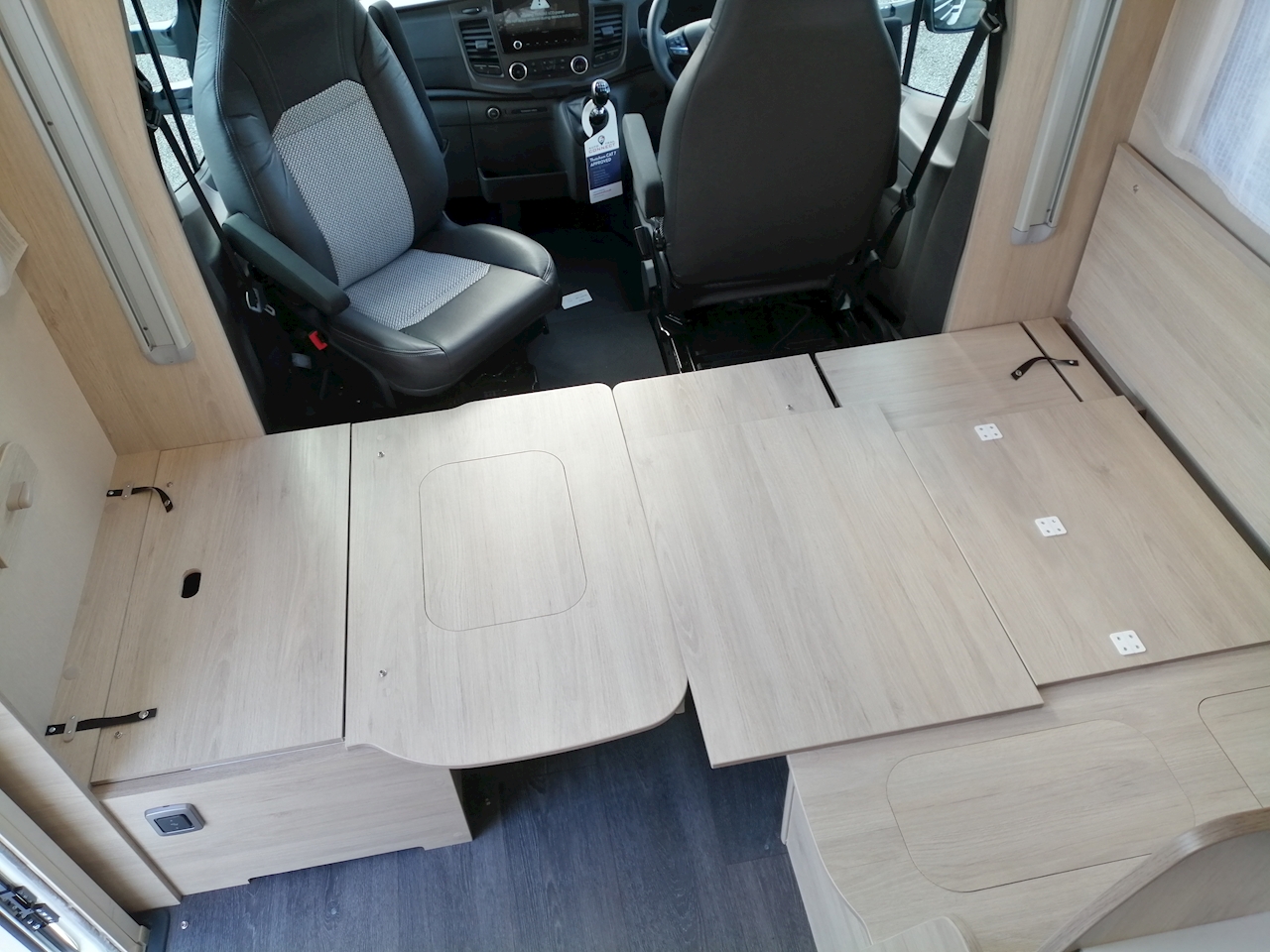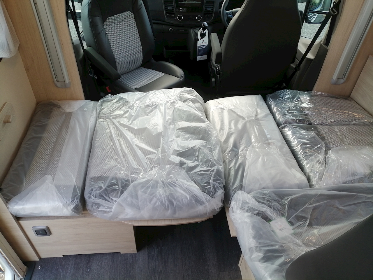 Pleated cab blinds, electric drop down bed, half dinette with X2 forward facing seatbelts, Alloy wheels., 170 BHP engine. Now includes a microwave....