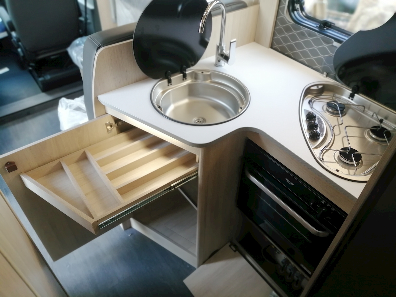 Zenec Xzent 9.5" LCD Display touch screen head unit - radio with motorhome specific satallite navigation, colour reverse camera, integrated into colour touch screen display, rear view camera, se;ectable when driving forwards, BBQ Point, TV Ariel and preperation, solar panel, omni vent, upgraded habitation entrance door and fly screen, loose fit carpets, cab carpets.
