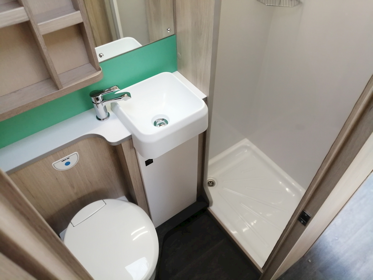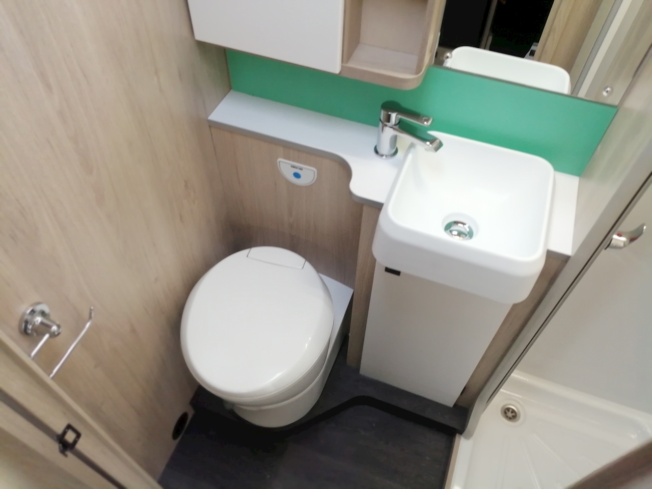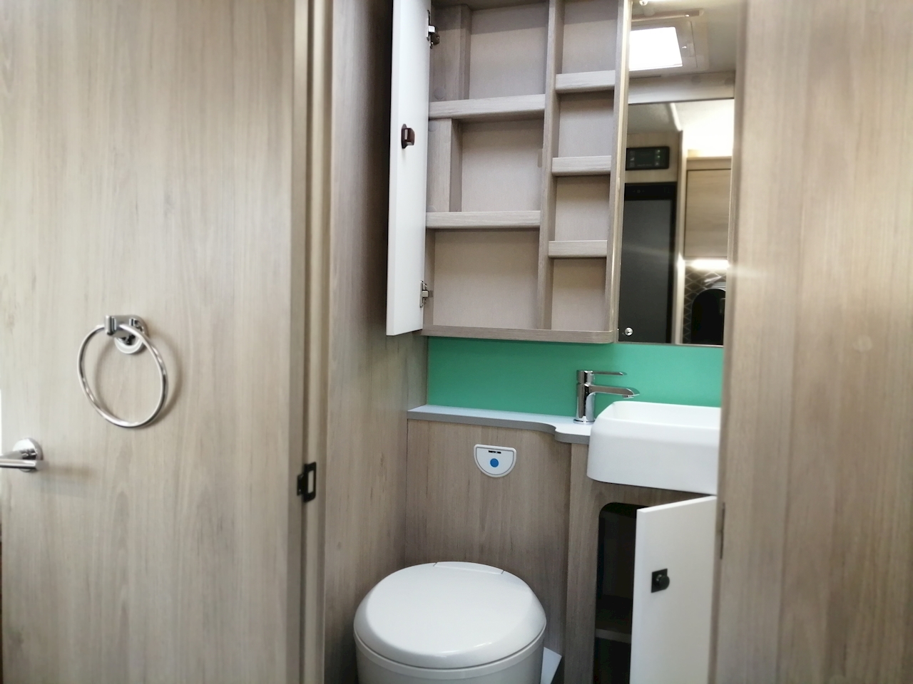 The Auto-Trail F-Line F-70 coachbuilt motorhome with fixed rear twin beds provides a sumptuous rear sleeping space and has the option of a drop-down double bed over the lounge area, which makes this layout ideal for busy families. The front lounge encompasses the front swivel captain’s chairs, giving you a roomy and accommodating space to entertain friends or spend some quality time with family. The Auto-Trail F-70 also benefits from an ample washroom with a separate shower as part of a cleverly designed interior.