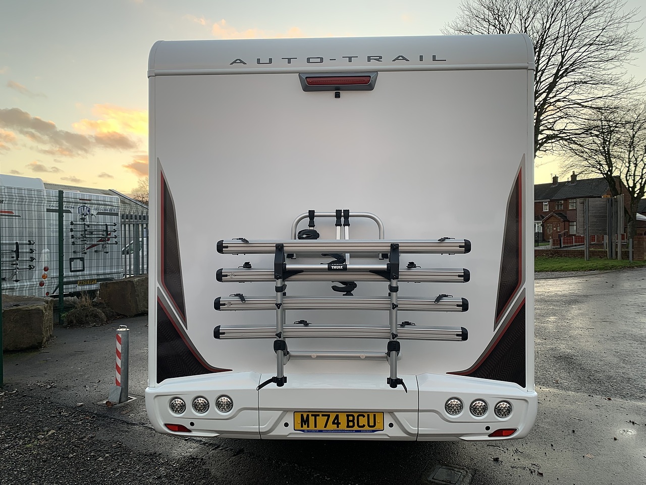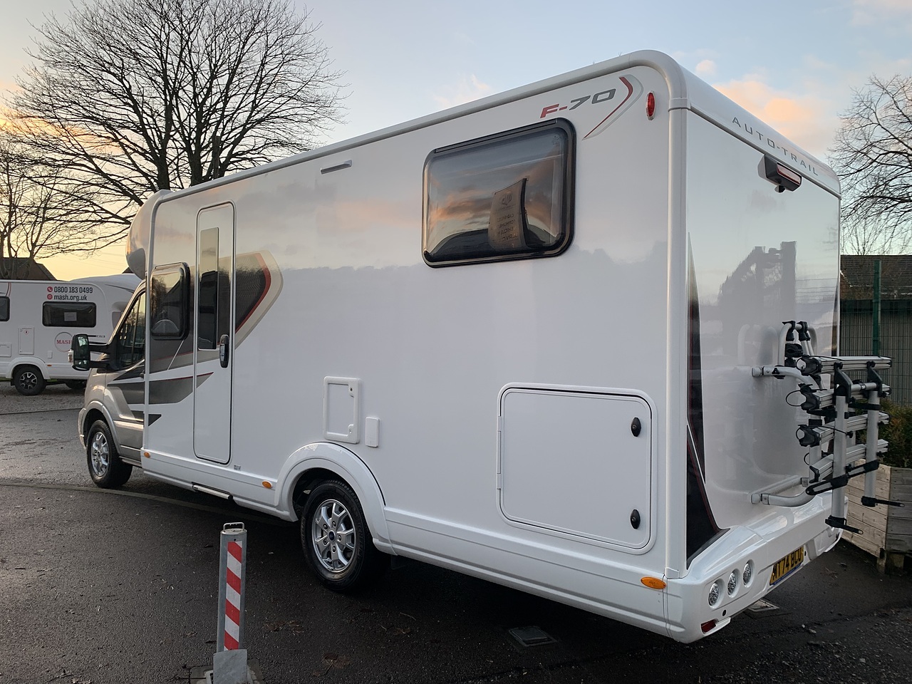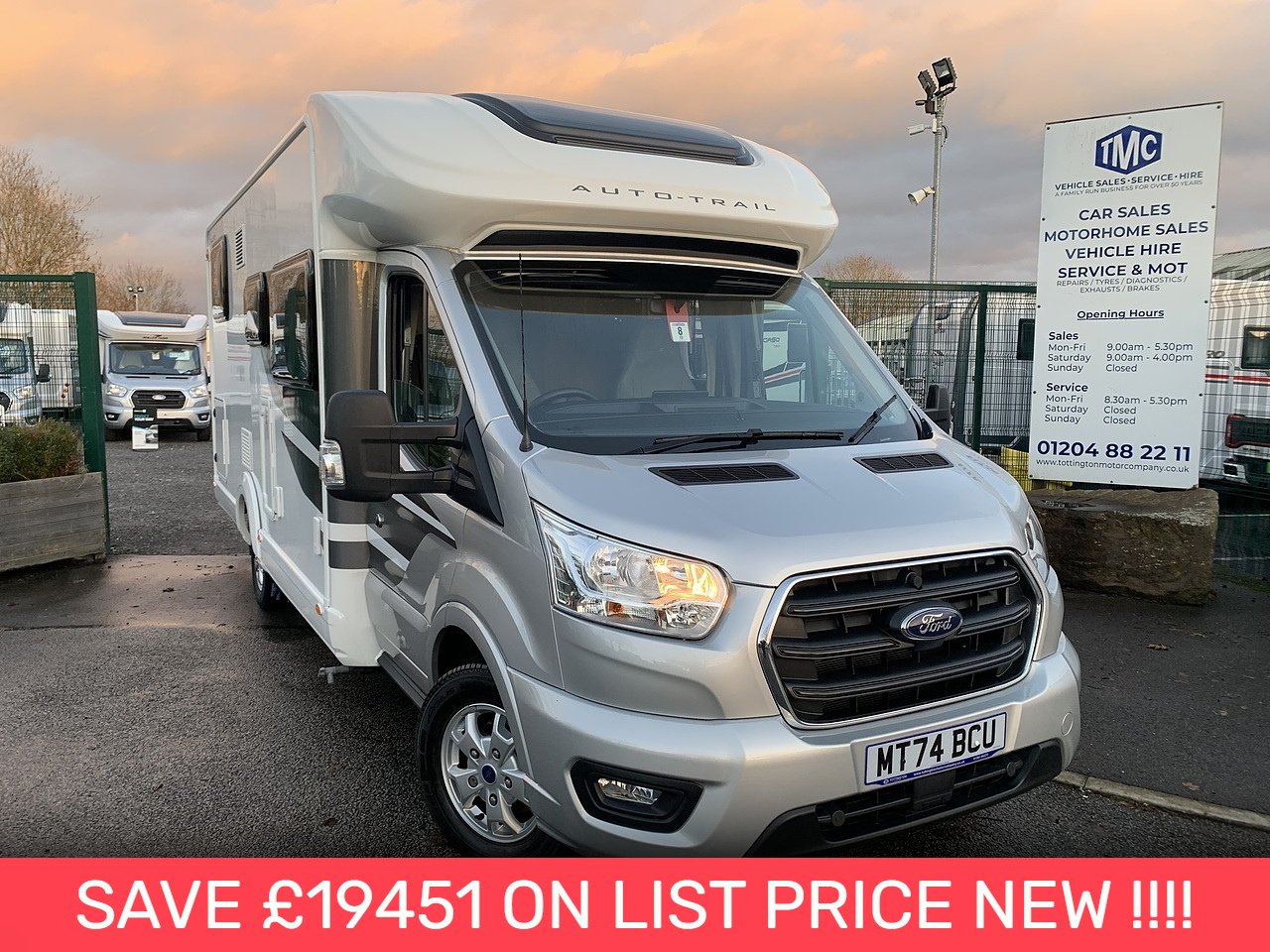 The Auto-Trail F-Line F-70 coachbuilt motorhome with fixed rear twin beds provides a sumptuous rear sleeping space and has the option of a drop-down double bed over the lounge area, which makes this layout ideal for busy families. The front lounge encompasses the front swivel captain’s chairs, giving you a roomy and accommodating space to entertain friends or spend some quality time with family. The Auto-Trail F-70 also benefits from an ample washroom with a separate shower as part of a cleverly designed interior.