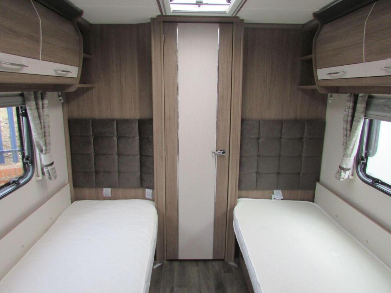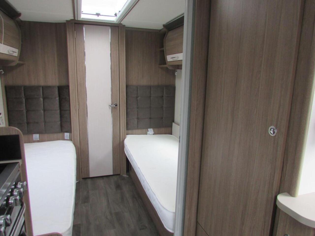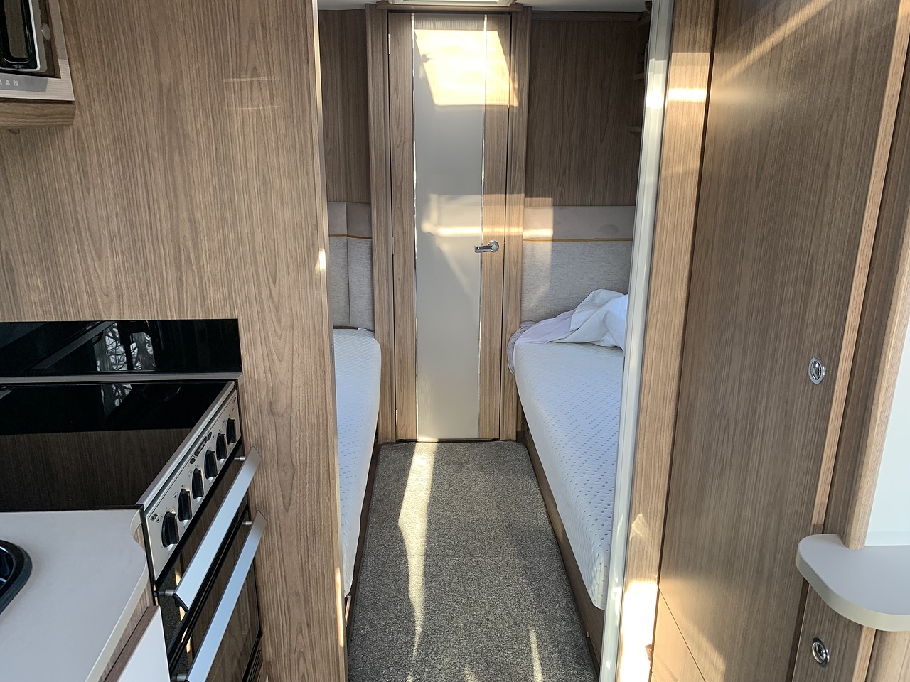 The 565 is a luxury 4 berth model featuring twin fixed single beds and an end washroom