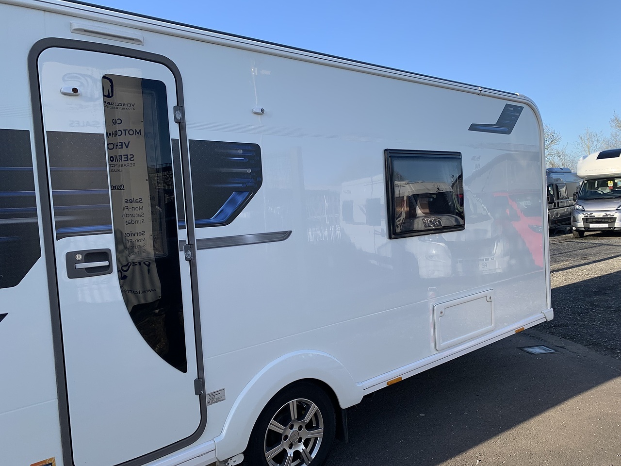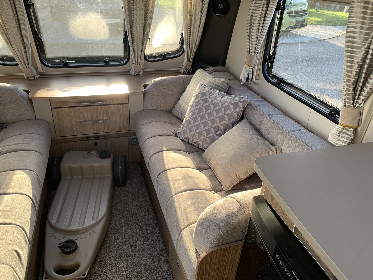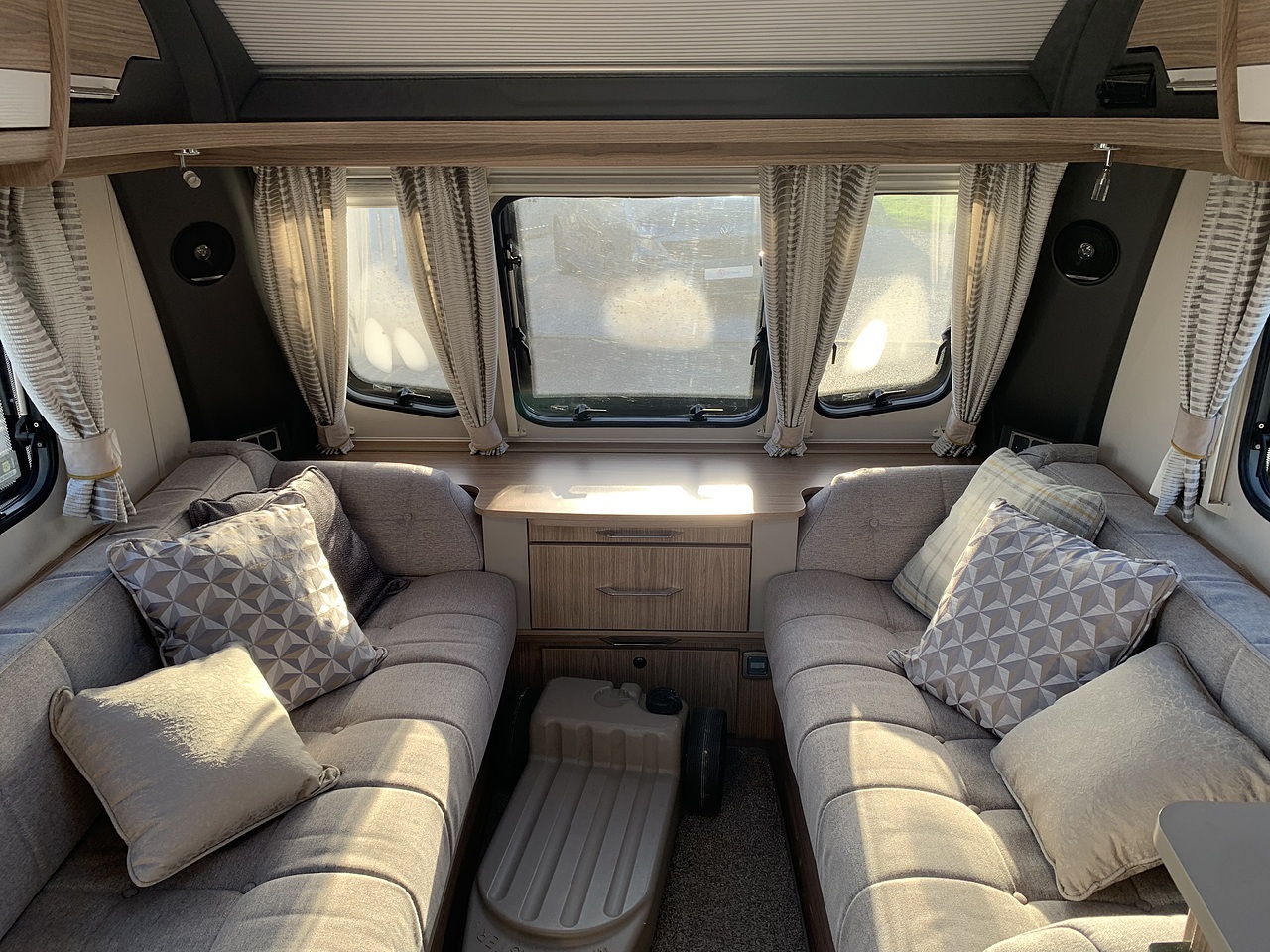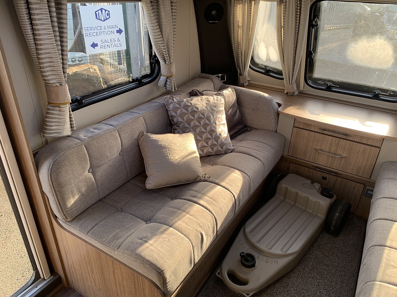 The 565 is a luxury 4 berth model featuring twin fixed single beds and an end washroom