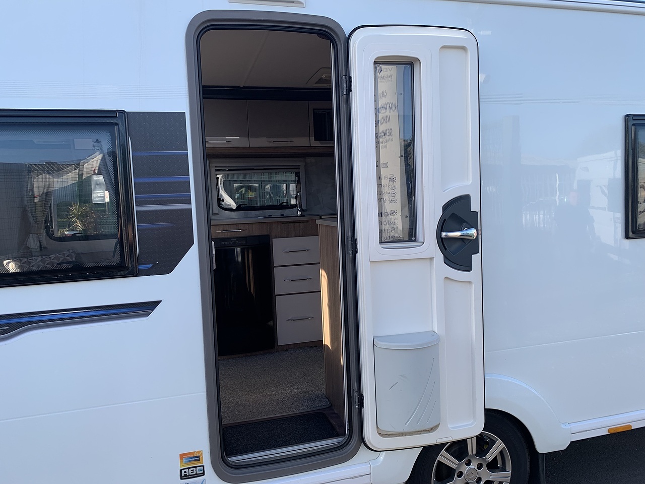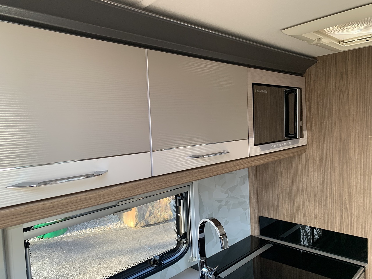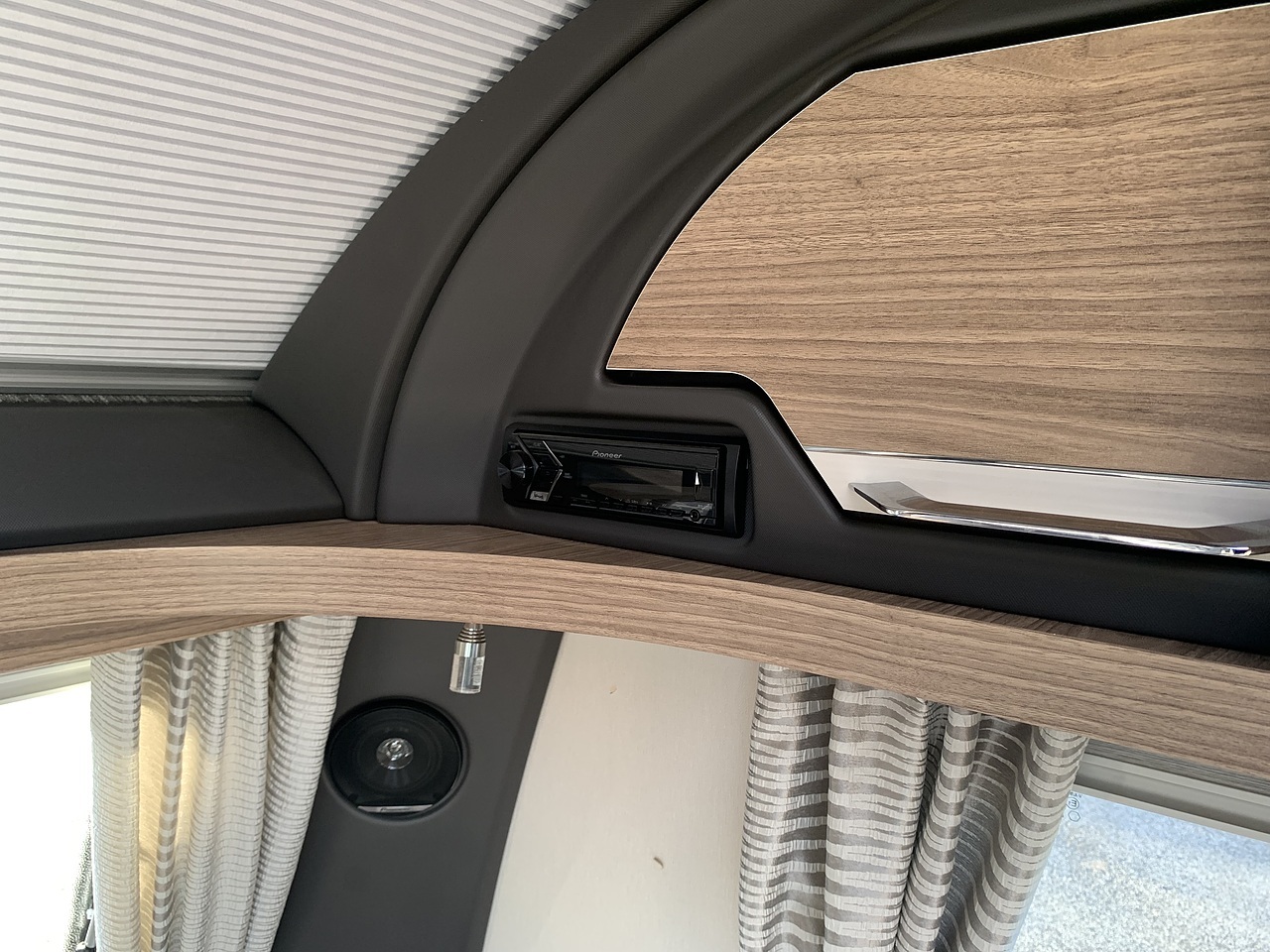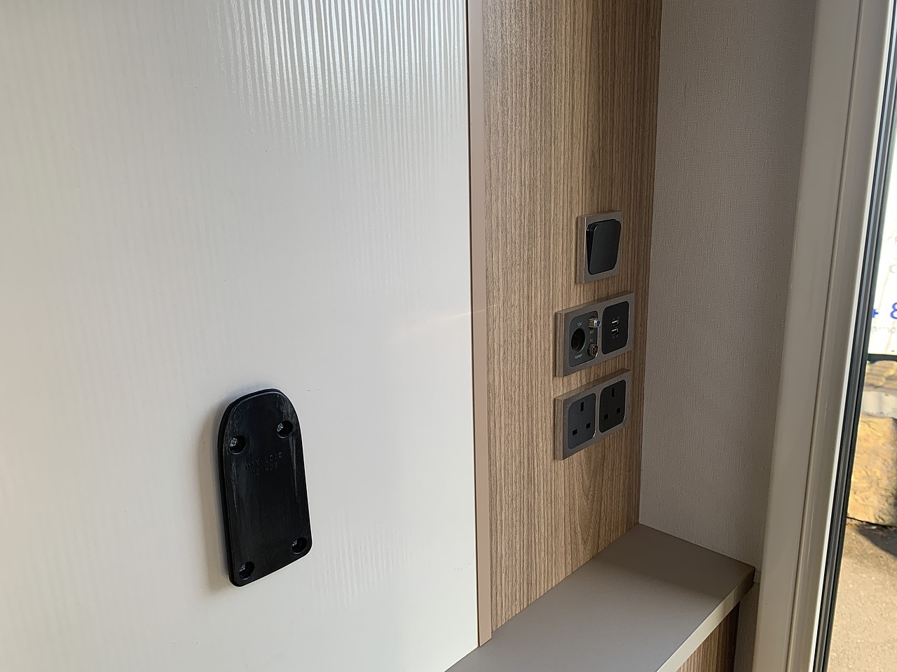 Internal premium upholstery in a neutral modern and high quality finish. Rear washroom is generous in size featuring a separate shower cubicle, cassette toilet, sink large overhead mirrored cabinet with plenty of storage for toiletries