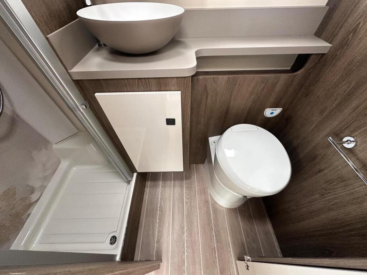Introducing the Roller Team Pegaso 590, the epitome of elegance and innovation in the world of motorhomes. Perfectly suited for couples or small families, this luxurious vehicle offers four spacious berths, ensuring that every journey is as comfortable as it is memorable. Built on a robust A-Class chassis, the Pegaso 590 combines superior drivability with sleek, sophisticated styling, epitomizing the pinnacle of Italian engineering and design. The high-specification design features a large rear bathroom, offering an oasis of comfort and convenience that rivals the finest hotels. The meticulously designed layout offers a harmonious blend of functionality and aesthetic appeal, making it an ideal sanctuary on wheels.